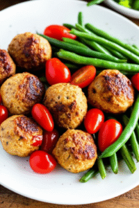 Turkey Meatballs with Green Beans & Cherry Tomatoes