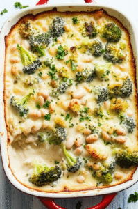 Creamy Lemon‑Parmesan Broccoli & White Bean Casserole