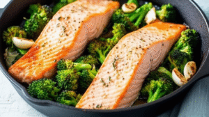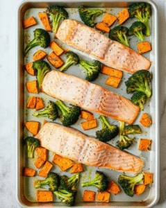 Sheet‑Pan Salmon with Sweet Potatoes & Broccoli